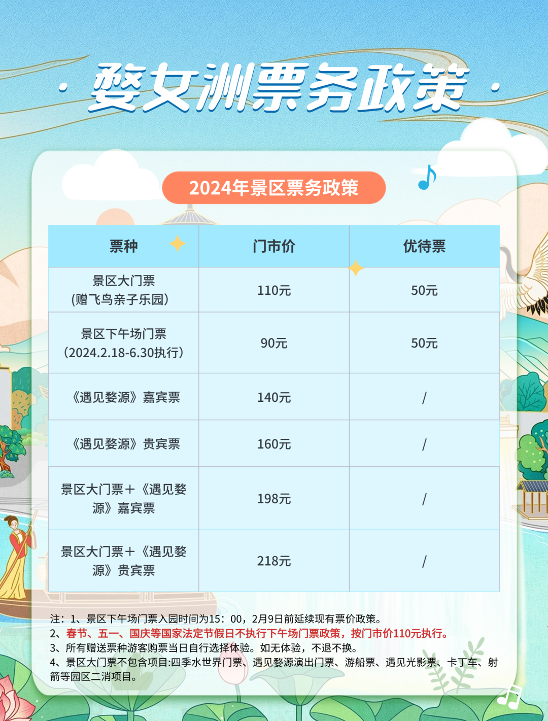 婺女洲2024年最新票务政策