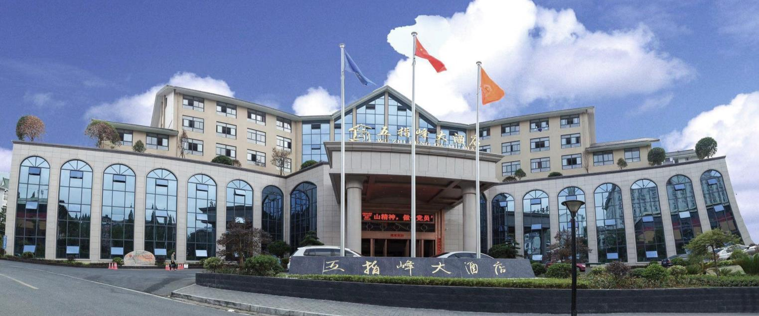 井冈山五指峰大酒店由江西井开实业投资发展有限公司投资兴建,酒店位于井冈山市茨坪5A级景区核心地段,建筑面积27000平方米,酒店环境优美,人文环境温馨,酒店内可直接欣赏到100元人民币背面五指峰美景,整体设计风格自然,简单,将井冈山的“红”与“绿”和酒店建筑有机结合,既彰显井冈山的风景秀丽,也预示了酒店的蓬勃发展。